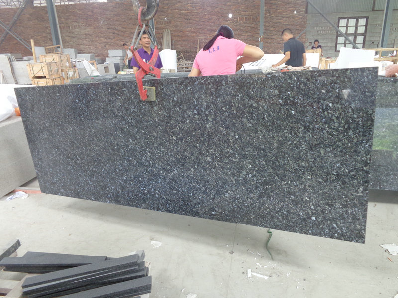 Blue Pearl Granite Kitchen Confertop هو إضافة مذهلة لأي مساحة طهي. بخلفيتها الأزرق الغنية العميقة المزينة بالفضة الفضية والرمادية المتلألئة ، فإنه ينضح بالأناقة والتطور.